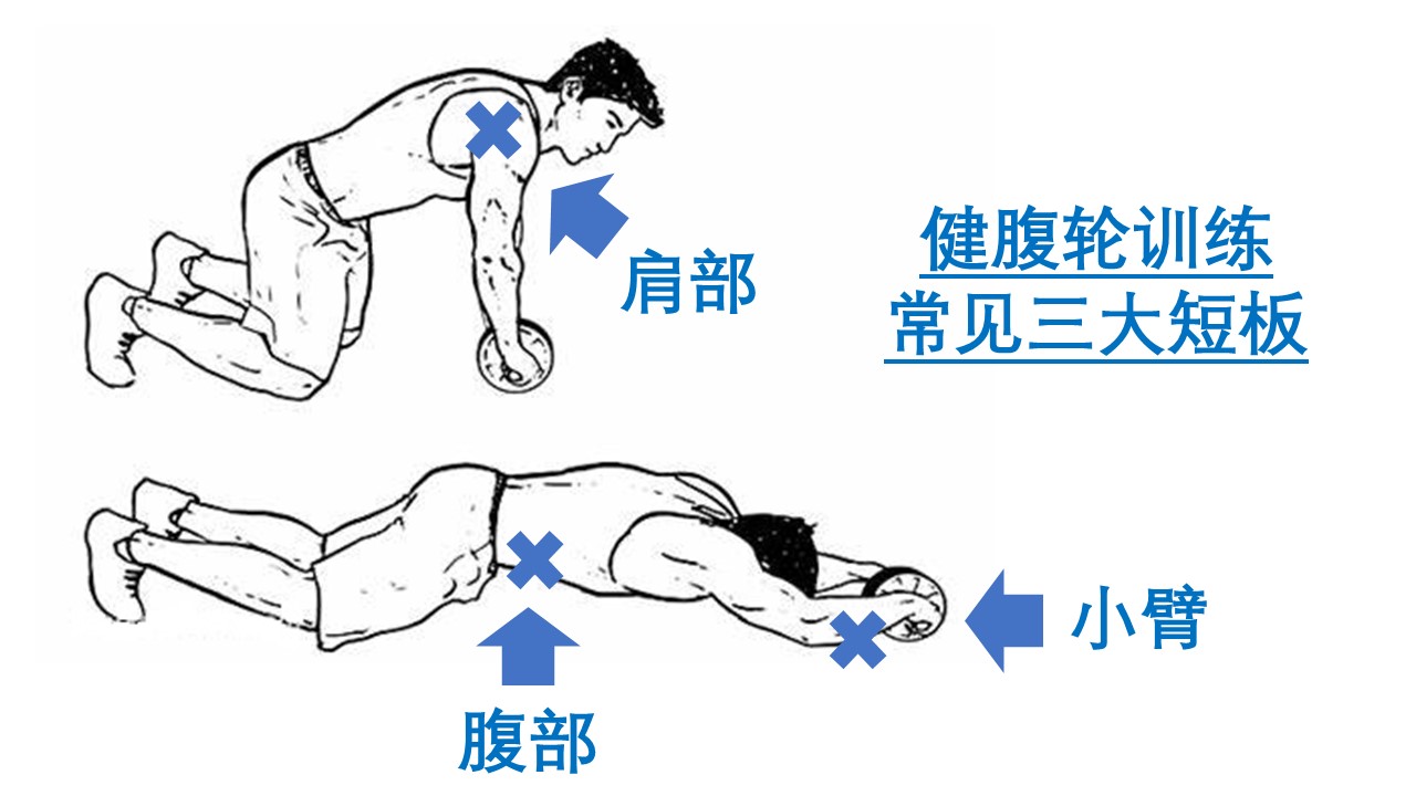 加强弱项训练,是力量训练中一条非常重要的原则。在腹肌轮训练中,哪些部位的肌肉力量是“短板”,那么就要另行安排针对它们的训练,比如: