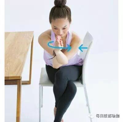 1. 伸直背肌,左腿搭在右腿上,而且右腿要绕着右腿。
