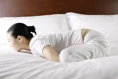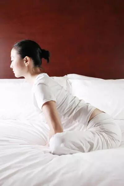tips:尽量使两膝靠近床面,结束动作后,伸直两腿,抖动放松。